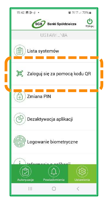 do bankowości internetowej SGB24 przy użyciu kodu QR.