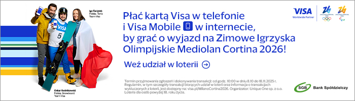 Organizator: Unique One sp. z o.o. Loteria jest przeznaczona dla osób, które ukończyły 18 lat. Lista transakcji wykluczonych z loterii jest dostępna w regulaminie na https://www.visa.pl/campaign/milanocortina2026.